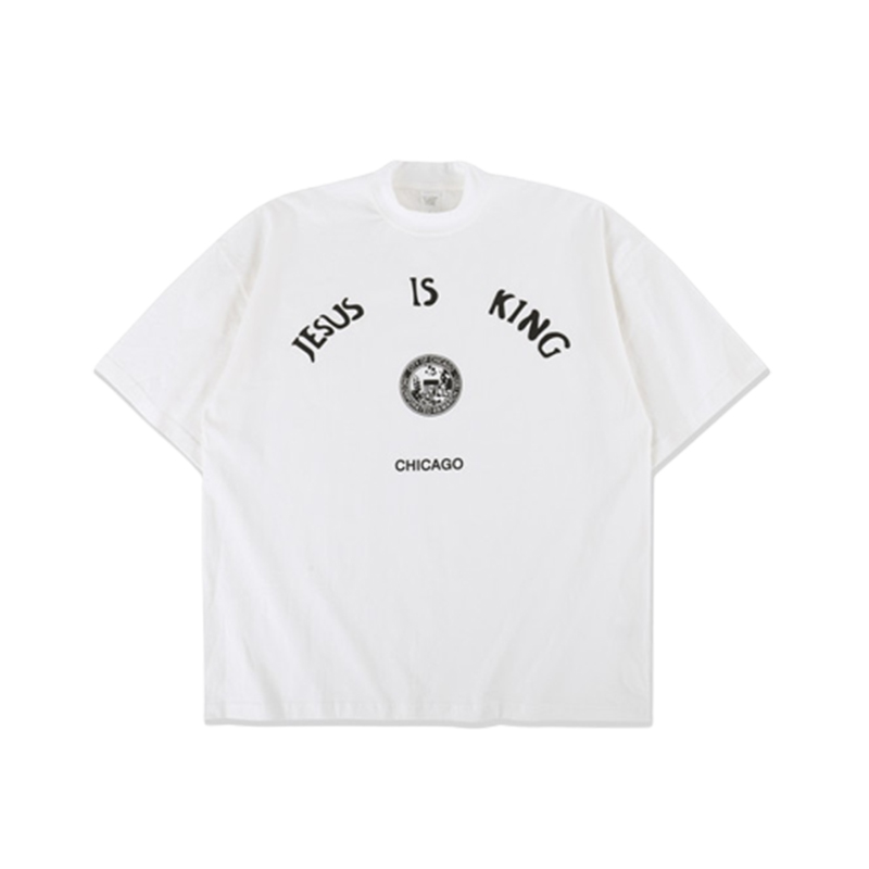 - Design: Minimalistic “Jesus Is King” design with a Chicago reference